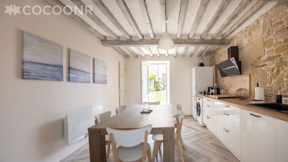 Nous vous proposons à la location, sur la commune de Langrune-sur-Mer, cette charmante maison de ville à moins d’un kilomètre de la plage, d’une superficie de 85 m² et pouvant accueillir jusqu’à 6 voyageurs. Elle est composée d’une jolie pièce à vivre de 20 m², d'une cuisine équipée, de trois belles chambres, une salle d'eau et vous pourrez profiter d’une cours collective ensoleillée le midi. Le Wifi est inclus, nous n’attendons plus que vous !