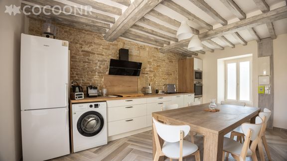 - Une cuisine équipée avec notamment : bouilloire électrique, four, four à micro-ondes, grille-pain, lave-vaisselle, plaques de cuisson, cafetière à dosettes Nespresso... et espace repas.