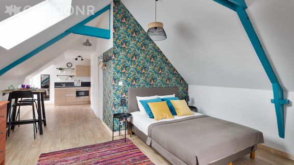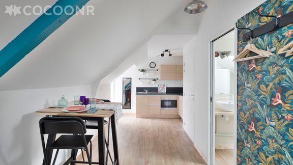 L'agence Cocoonr/book&Pay vous propose à la location, sur Lanvallay, ce charmant studio de 38 m² exposé sud-est situé au 2e et dernier étage et pouvant accueillir jusqu'à 2 voyageurs. Le studio se compose d'une cuisine ouverte et entièrement équipée, coin repas, espace nuit avec un lit double, salle de bain avec douche et WC. Jardin partagé, draps, serviettes et wifi inclus. Nous n'attendons plus que vous !