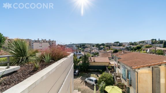 - Côté cuisine et chambres, une terrasse de 10m² pour profiter des beaux jours avec son salon de jardin et store électrique.