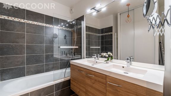 - Une salle de bain avec baignoire.