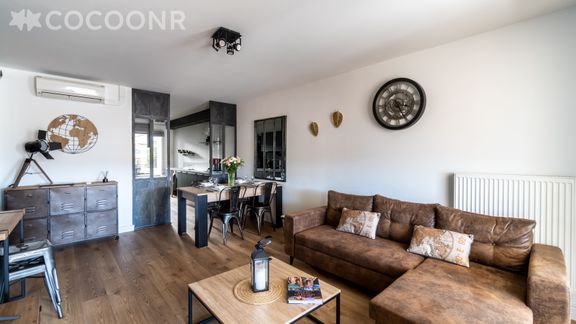 - Une pièce de vie de 30 m² avec TV, canapé lit double et espace salle à manger.