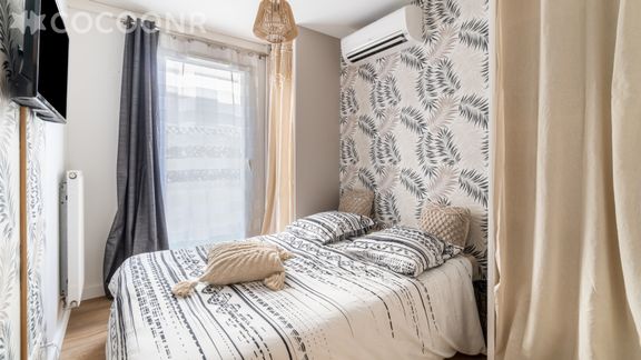Nous vous proposons à la location, sur la commune de Le Cannet, ce charmant appartement récent et sécurisé avec climatisation (réversible) d’une superficie de 65 m² et pouvant accueillir jusqu’à 6 voyageurs. Situé au 2ème étage (avec ascenseur), il se compose d’une jolie pièce à vivre de 30 m², d'une cuisine équipée, de deux belles chambres, deux salles de bain ainsi que d'un balcon. Wifi (fibre optique), draps et serviettes inclus, nous n’attendons plus que vous !