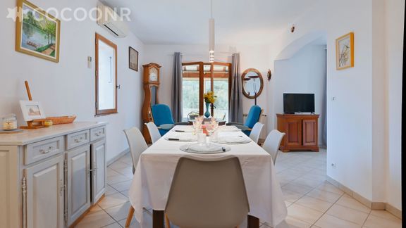 L'agence Cocoonr/Bookandpay vous propose à la location, à Le Castellet, cette charmante maison avec vue montagne, d’une superficie de 115 m² et pouvant accueillir jusqu’à 8 voyageurs. Elle est composée d’une jolie pièce à vivre de 115 m² (avec cheminée), d'une cuisine équipée, de trois belles chambres, deux salles de bain (avec douche et baignoire) et vous pourrez profiter d’un jardin d’environ 900 m². Wifi (fibre optique), draps et serviettes inclus, nous n’attendons plus que vous !