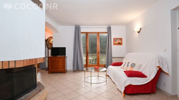 - Une pièce de vie de 45 m² avec TV, canapé-lit double, cheminée (bois non fourni)