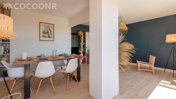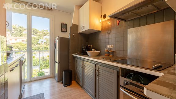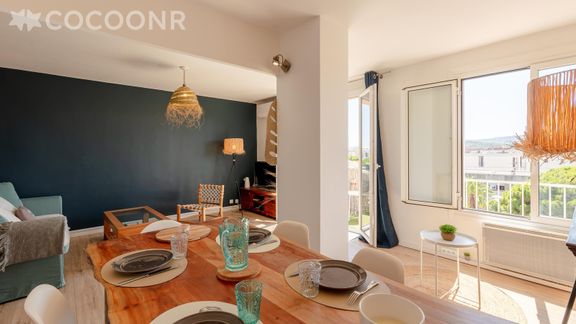 L'Agence Cocoonr/Book&Pay vous propose, à Le Lavandou, ce charmant appartement à 650 mètres de la plage, d’une superficie de 70 m² et pouvant accueillir jusqu’à 4 voyageurs. L'appartement est traversant, orienté sud et possède de jolies vues depuis toutes les pièces, il est situé au 2e étage (sans ascenseur). La pièce de vie et les chambres sont climatisées.