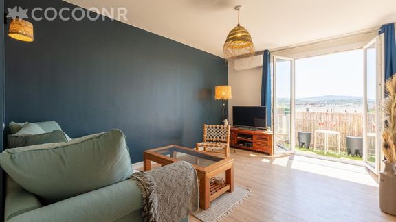 - Une belle pièce de vie très lumineuse de 27 m² avec TV, canapé...