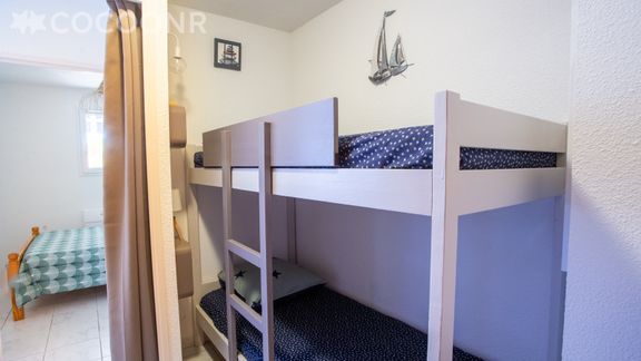 - Un espace nuit avec un lit superposé (2 couchages, 90×190)