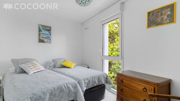 - Chambre 2 : avec deux lits simples (80x200) pouvant être rapprochés pour faire un grand lit (160x200).