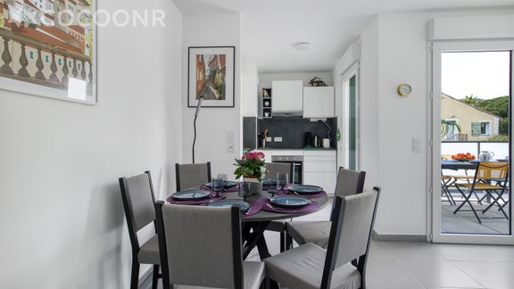 - Une cuisine équipée avec notamment : bouilloire électrique, four, four à micro-ondes, grille-pain, lave-vaisselle, plaques de cuisson...