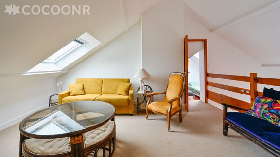 - Une pièce de vie de 30 m² avec un coin repas et deux fauteuils