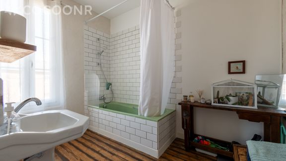 - Une salle de bain avec baignoire