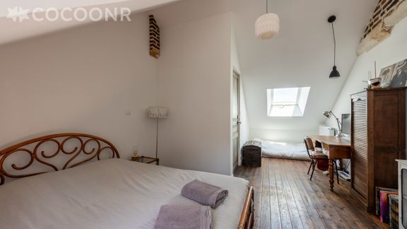 - Chambre 2 : avec un lit double (140x190), un lit simple sur sommier au sol et un espace bureau