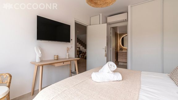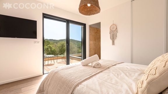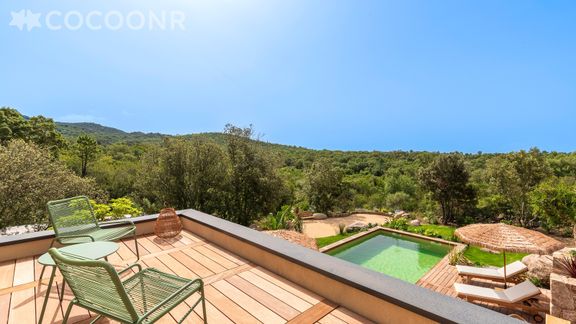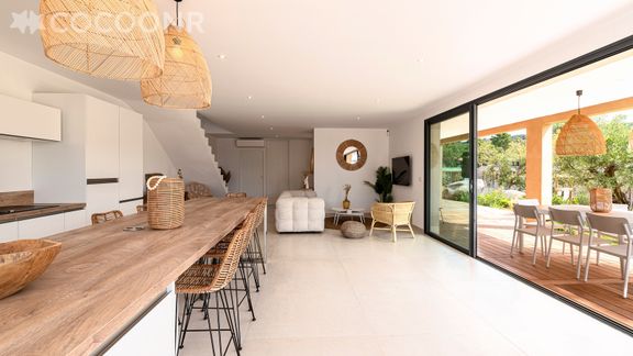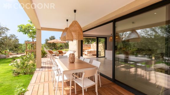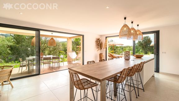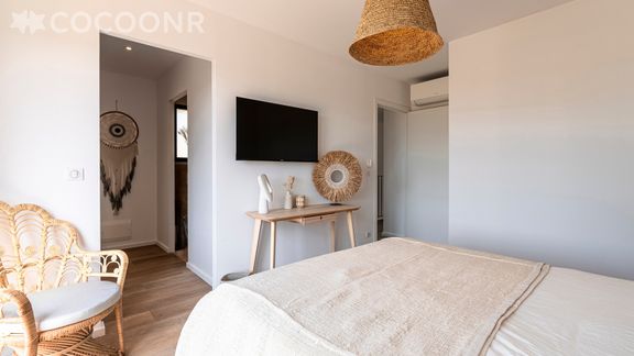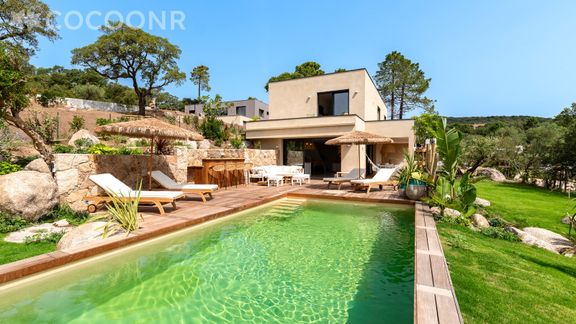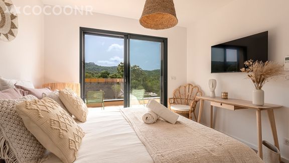 L'agence Cocoonr/Book&Pay vous propose à la location, sur la commune de Lecci, cette charmante maison climatisée avec vue montagne, avec piscine, à 3 km de la baie de Saint-Cyprien, d’une superficie de 170 m² et pouvant accueillir jusqu’à 8 voyageurs. Elle est composée d’une jolie pièce à vivre, d'une cuisine équipée, de quatre belles chambres et de quatre salles d'eau. Vous pourrez profiter d’un jardin d’environ 1 400 m² ! Wifi, draps et serviettes inclus, nous n’attendons plus que vous !