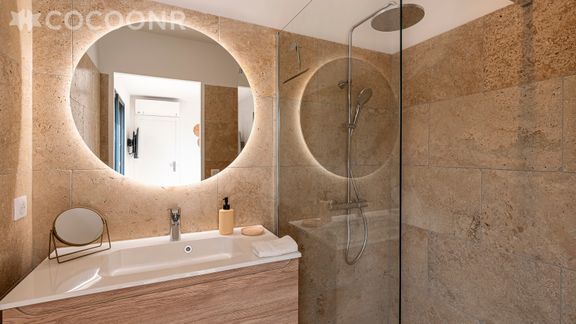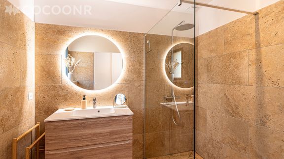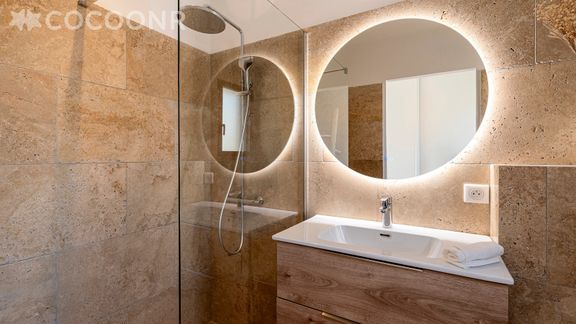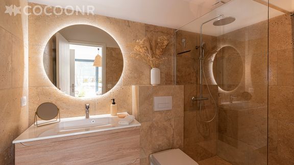 - Chambre 1 : un lit queen-size (160×200), salle d'eau avec douche et WC