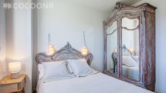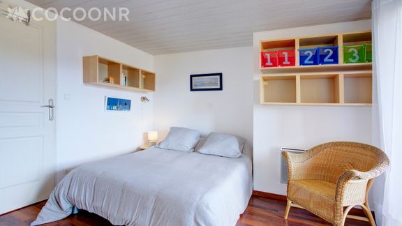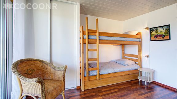 - Chambre 1 : avec un lit superposé (2 couchages) et un lit double (140×190)