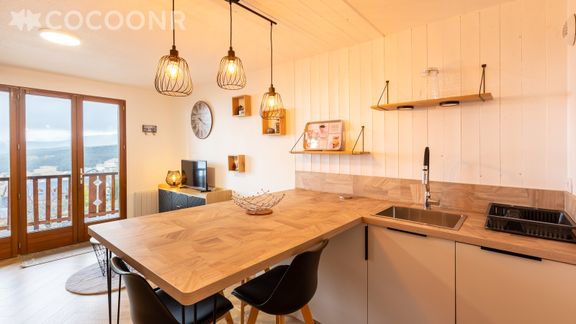- Une cuisine équipée avec notamment : bouilloire électrique, four, four à micro-ondes, grille-pain, lave-vaisselle, plaques de cuisson, cafetière à filtre et nespresso... et coin repas