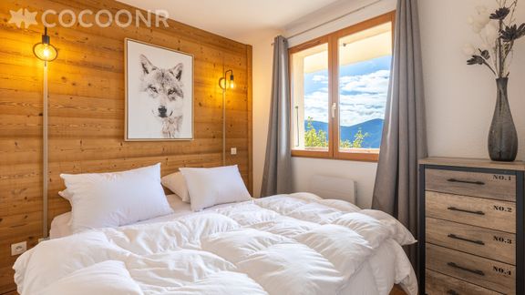 - Un balcon d'environ 10m² exposé Sud avec une vue sur le lac et la montagne