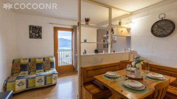 Nous vous proposons à la location, sur la commune de Les Angles, ce charmant studio avec station de ski accessible à pied, d’une superficie de 24 m² et pouvant accueillir jusqu’à 2 voyageurs. Situé au 3e étage (avec ascenseur), il se compose d’une jolie pièce à vivre de 24 m², d'une cuisine ouverte équipée, d'une salle de bain et vous pourrez profiter d'un balcon exposé plein Sud avec vue sur le lac de Matemale. Nous n'attendons plus que vous !