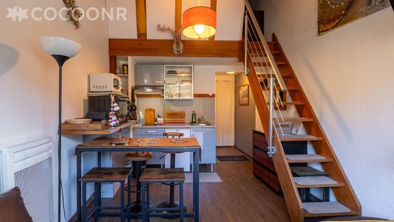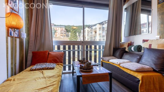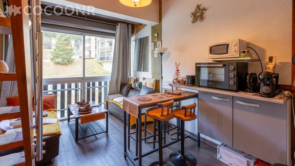 L'Agence Cocoonr/Book&Pay vous propose, aux Angles, ce studio en mezzanine avec vue montagne, station de ski accessible à pied, d’une superficie de 23 m² et pouvant accueillir jusqu’à 4 voyageurs. Situé au 2e étage (sans ascenseur), il se compose d’une pièce à vivre de 17 m², kitchenette ouverte équipée, d’une chambre, une salle d'eau (avec douche) et vous pourrez profiter d’un jardin partagé d’environ 500 m². Wifi inclus, nous n’attendons plus que vous !