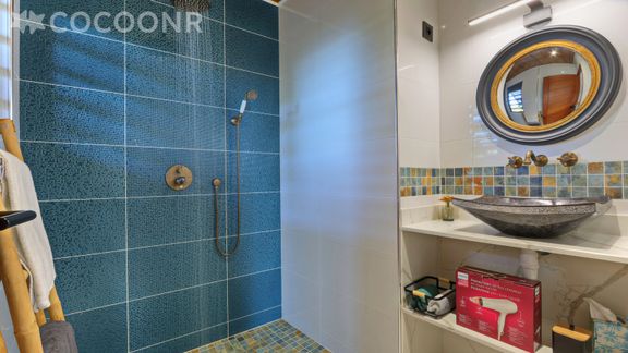 - Une douche extérieure partagée avec un autre studio que nous proposons également à la location : Studio Pitaya