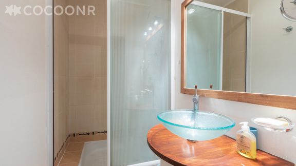 - Chambre 1 : un lit king-size (180×200) avec salle d'eau avec douche et lavabo.