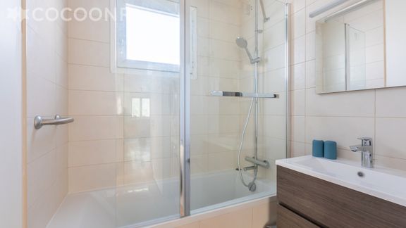 - Une salle de bain avec baignoire.