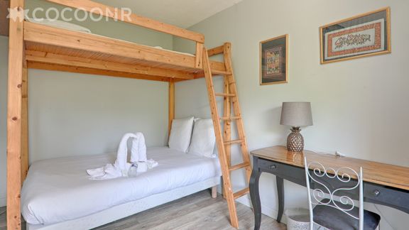 - Chambre 2 : un lit double (140×190) et un lit simple superposé (90×190)