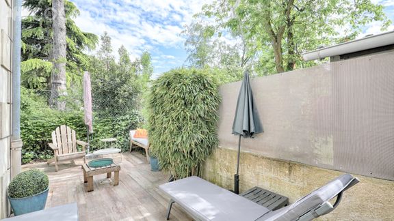 - Une terrasse privative d'environ 60 m² avec barbecue gaz Weber, table et chaises, bains de soleil, bancs...