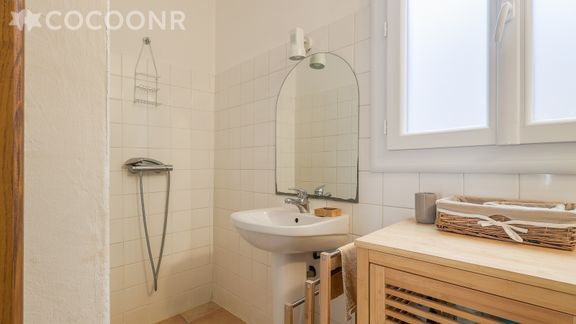 - Chambre 2 : avec un lit double (140×190), une salle d'eau avec douche et WC