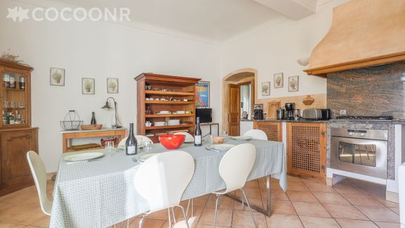 - Une cuisine équipée avec notamment : bouilloire électrique, four, four à micro-ondes, grille-pain, lave-vaisselle, plaques de cuisson...