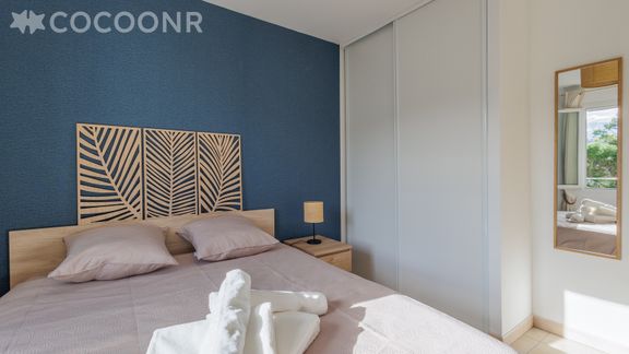 - L'appartement est équipé du Wi-Fi, de la climatisation et de volets coulissants en aluminium brise-soleil pour un confort maximal.