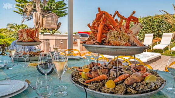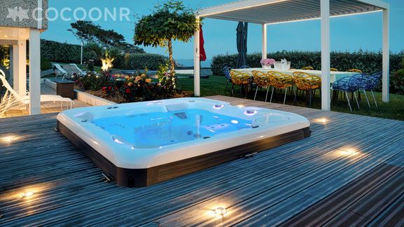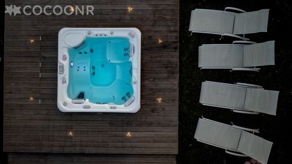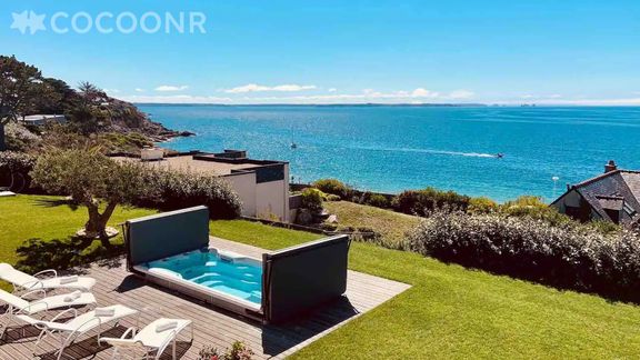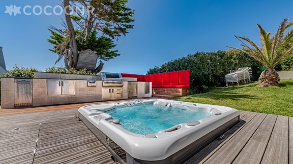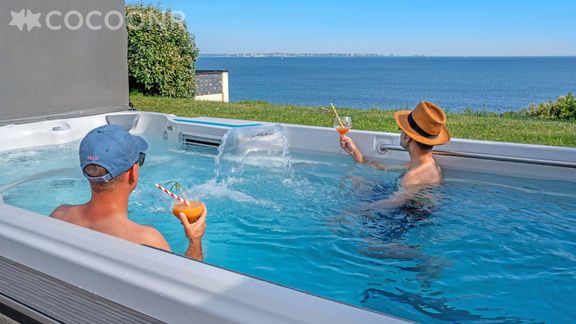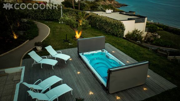 - Plongez dans la piscine privée et chauffée à contre-courant (5,20x2,30m) ou optez pour un moment de relaxation dans le jacuzzi pour huit personnes. Ces équipements sont accessibles 24h/24, toute l'année, pour une expérience de bien-être sans interruption. Un dispositif de panneaux protège la piscine lorsqu’elle n’est pas utilisée, garantissant entretien facile et sécurité. Et vous profiterez d’une vue imprenable sur la mer pendant vos moments de détente.