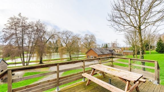 - Une pièce de vie de 32 m² avec TV, canapé, fauteuil... avec une vue sur un domaine de 4 hectares recouverts d'une dizaine d'étangs de pêche, la pièce est équipée d'une climatisation réversible