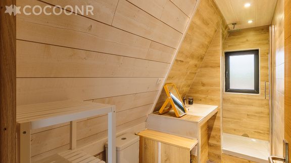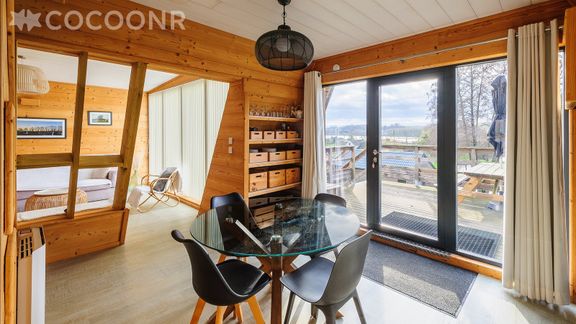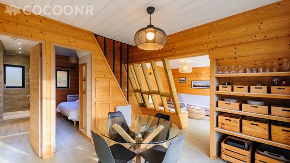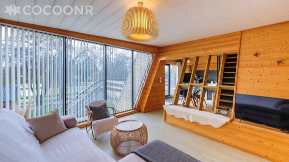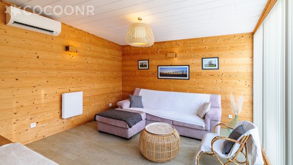 - Tout le cottage est en bois, bien isolé du bruit et du froid, toutes les fenêtres et baies vitrées (sauf petite fenêtre cuisine et salle de bain) sont équipées de rideaux thermorégulateurs (chaud et froid).
