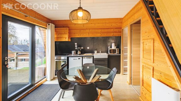 L'Agence Cocoonr/Book&Pay vous propose, dans un cadre paisible au bord d'étangs de pêche et de la véloroute 3, ce charmant chalet climatisé d’une superficie de 60 m² et pouvant accueillir jusqu’à 4 voyageurs. Il est composée d’une jolie pièce à vivre de 32 m², d'une cuisine équipée, de deux belles chambres et d'une salle de bain (avec douche) et vous pourrez profiter d’un jardin d’environ 5 000 m². Wifi, draps et serviettes inclus, nous n’attendons plus que vous !