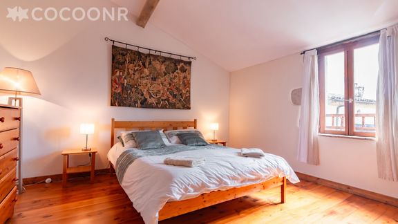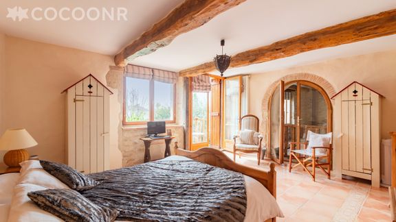 - Chambre 1 : un lit king-size (180×200) avec accès balcon (2mx1m) accès chambre avec table et chaises