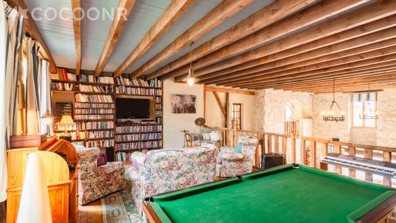 - Une mezzanine avec un espace salon, bibliothèque, billard, TV...