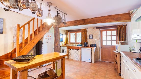 - Une cuisine équipée avec notamment : bouilloire électrique, four, four à micro-ondes, grille-pain, lave-vaisselle, lave-linge, plaques de cuisson...