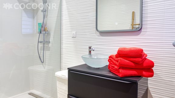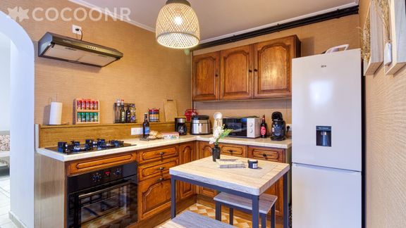 - Une cuisine équipée avec notamment : bouilloire électrique, four, four à micro-ondes, grille-pain, plaques de cuisson...