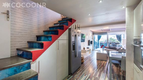 - Une terrasse privé plein sud comprenant un espace semi-couvert et coin en plein air de 21 m² avec mobilier pour profiter des beaux jours