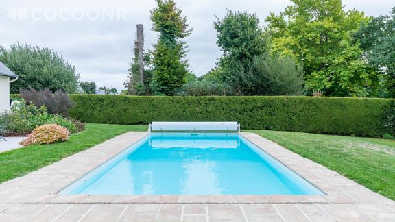 - Une piscine de 9 m x 4.50 m(privée, chauffée) ouverte de juin à septembre. Fermeture sécurisée par un volet électrique. Profondeur de 1m10 à 1m40.