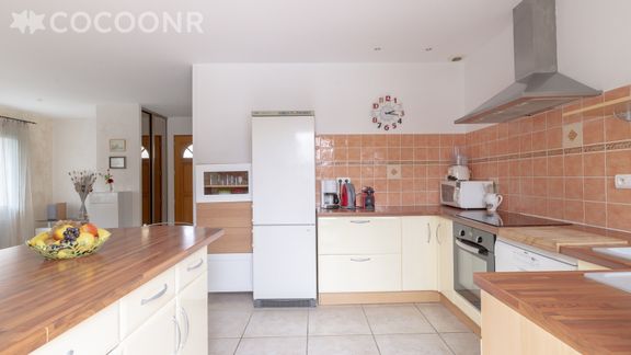 - Une cuisine ouverte équipée avec notamment : bouilloire électrique, four, four à micro-ondes, grille-pain, lave-vaisselle, plaques de cuisson, cafetière à dosettes Nespresso...