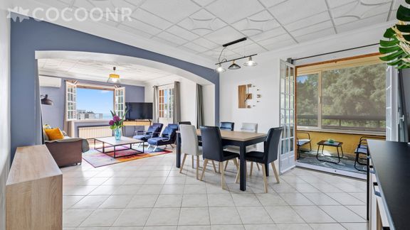L'agence Cocoonr/Book&Pay vous propose à la location, sur la commune de Menton, ce charmant appartement climatisé avec vue mer, d’une superficie de 120 m² et pouvant accueillir jusqu’à 6 voyageurs. Situé au 1er étage (sans ascenseur), il se compose d’une jolie pièce à vivre de 40 m², d'une cuisine équipée, de deux belles chambres et de deux salles de bain. Wifi (fibre optique) inclus, nous n’attendons plus que vous !