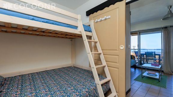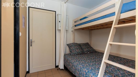 - Un espace nuit : avec un lit superposé (1 lit double (140×190) en bas et 1 lit simple en haut)