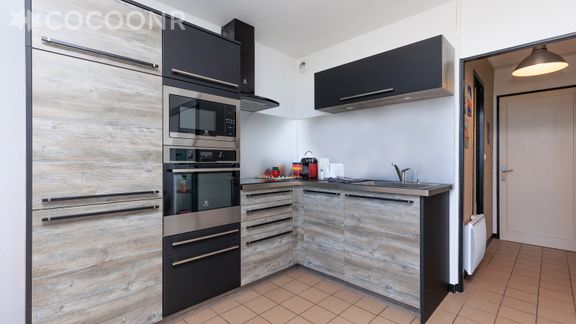 - Une cuisine équipée avec notamment : bouilloire électrique, four, four à micro-ondes, grille-pain, lave-vaisselle, plaques de cuisson...