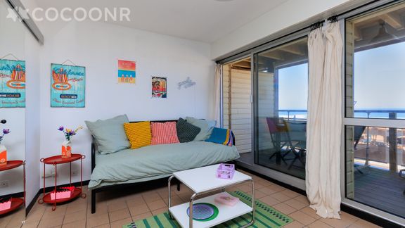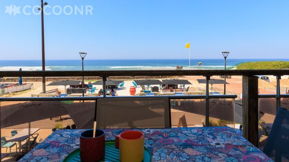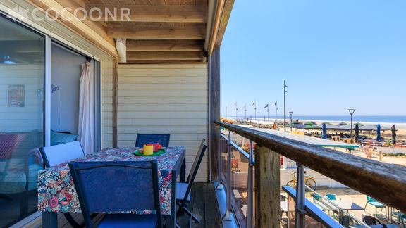 - Un balcon de 7 m² avec mobilier (1 table, 4 chaises et 2 bains de soleil) pour profiter des beaux jours. La loggia est couverte d'un store banne vertical. Vue océan depuis le balcon.