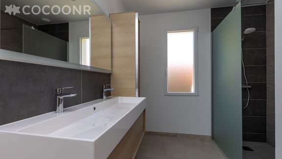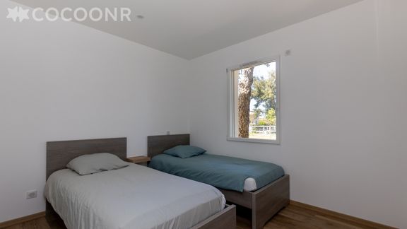 - Chambre 1 : avec 1 lit double (140×190) et une salle d'eau privative avec douche