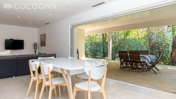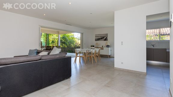 Nous vous proposons à la location, sur la commune de Moliets-et-Maa, cette charmante maison climatisée d’une superficie de 130 m² et pouvant accueillir jusqu’à 6 voyageurs. Elle est composée d’une jolie pièce à vivre de 57 m², d'une cuisine équipée, de trois belles chambres, de deux salles d'eau (avec douche) et vous pourrez profiter d’un jardin d’environ 760 m². Wi-Fi (fibre optique) inclus, nous n’attendons plus que vous !