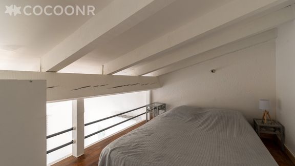 Un lit double 140 avec matelas et sommier de qualité se trouve dans un deuxième espace-nuit situé en mezzanine.